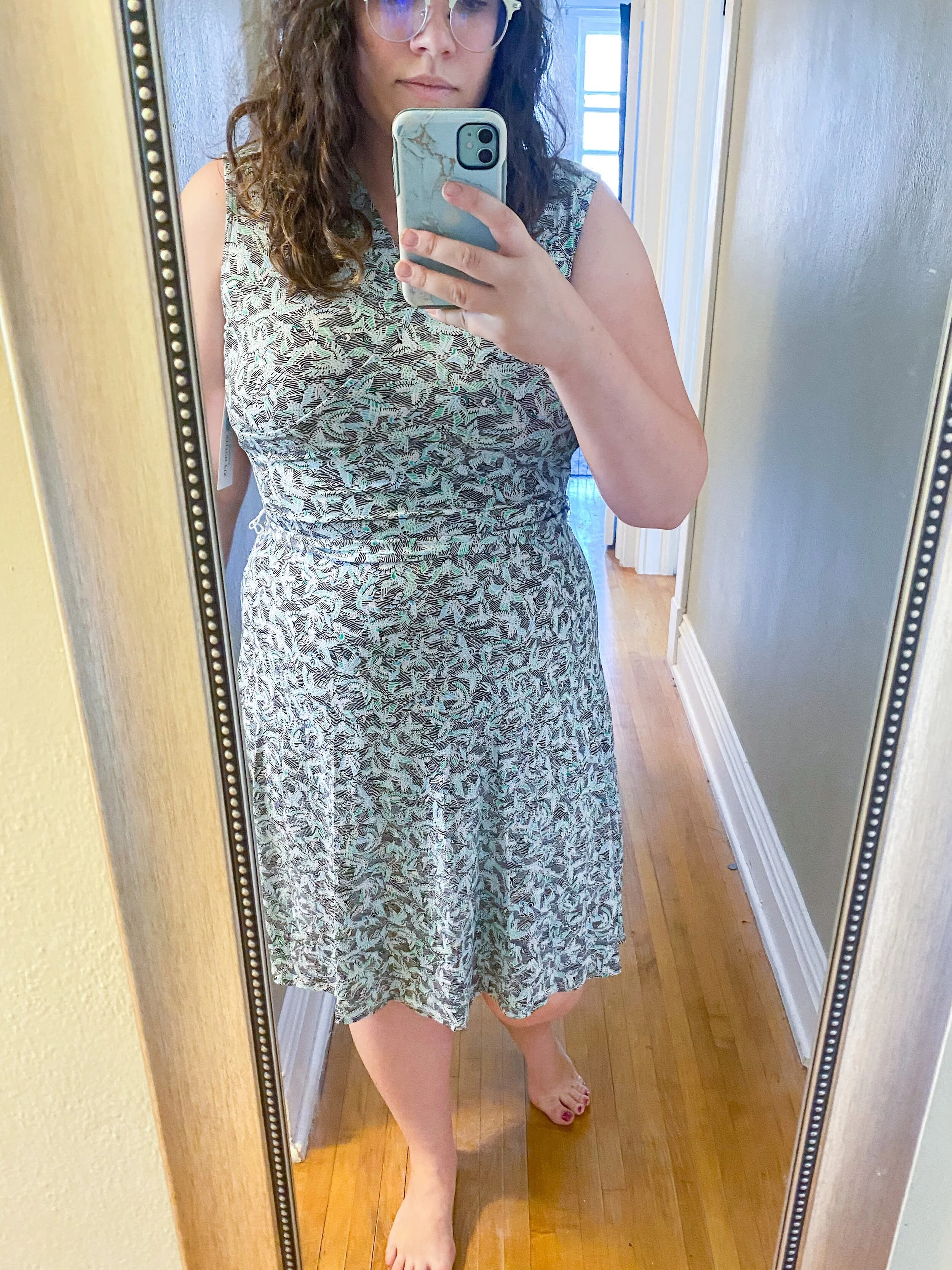 The dress was a Finnley Faux Wrap Knit Dress from Fia ($88 retail price). It’s not that I didn’t like this dress, it’s just that the quality didn’t match the price, certainly. It was a light and breezy jersey dress and I thought the fit was very flattering. But the fabric was flimsy and cheap. If I was in a store, I wouldn’t have given this dress a second look because of that, so back to the warehouse, it went.